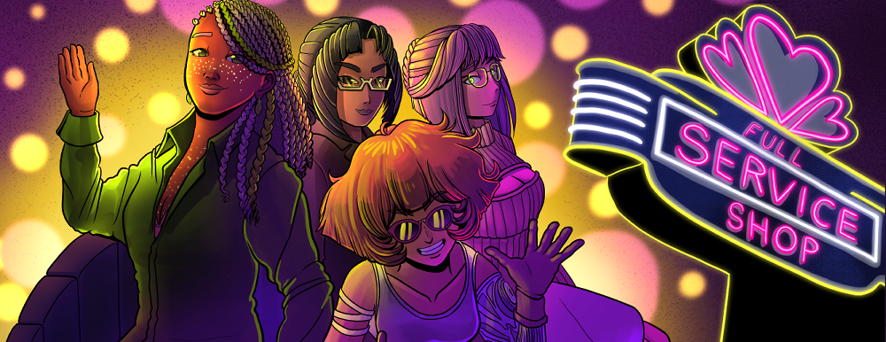 A kinky, futuristic health clinic where lesbian and sapphic humans and cyborgs can swap out their naughty parts is the setting for the NSFW visual novel Full Service Shop. We made it to NaNoRenO 2020 in just six weeks!